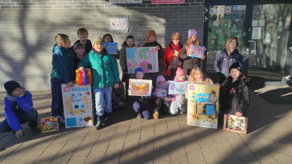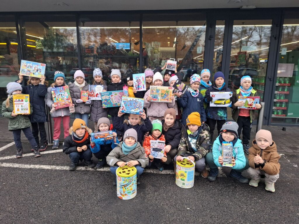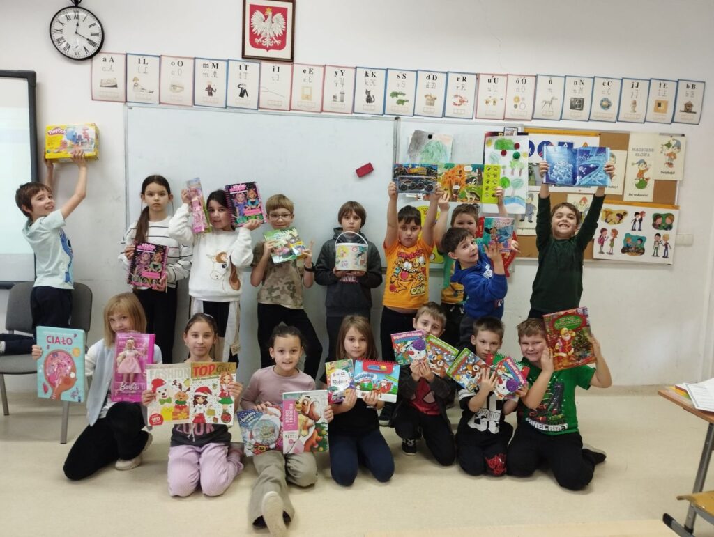 Kolejny raz uczniowie klas I-III wzięli udział w akcji „Podaruj prezent na święta” zorganizowanej przez Fundację Na ratunek Dzieciom z Chorobą Nowotworową. Dzieci z klas Ib, Ic, IIe, IIIa, IIIc, IIId i IIIe kupiły zabawki, książki, gry planszowe i edukacyjne i przekazały je chorym podopiecznym Kliniki „Przylądek Nadziei” we Wrocławiu. To ważna lekcja dla wszystkich o empatii, serdeczności i pomaganiu potrzebującym. Dziękujemy za zaangażowanie i do zobaczenia za rok 🙂